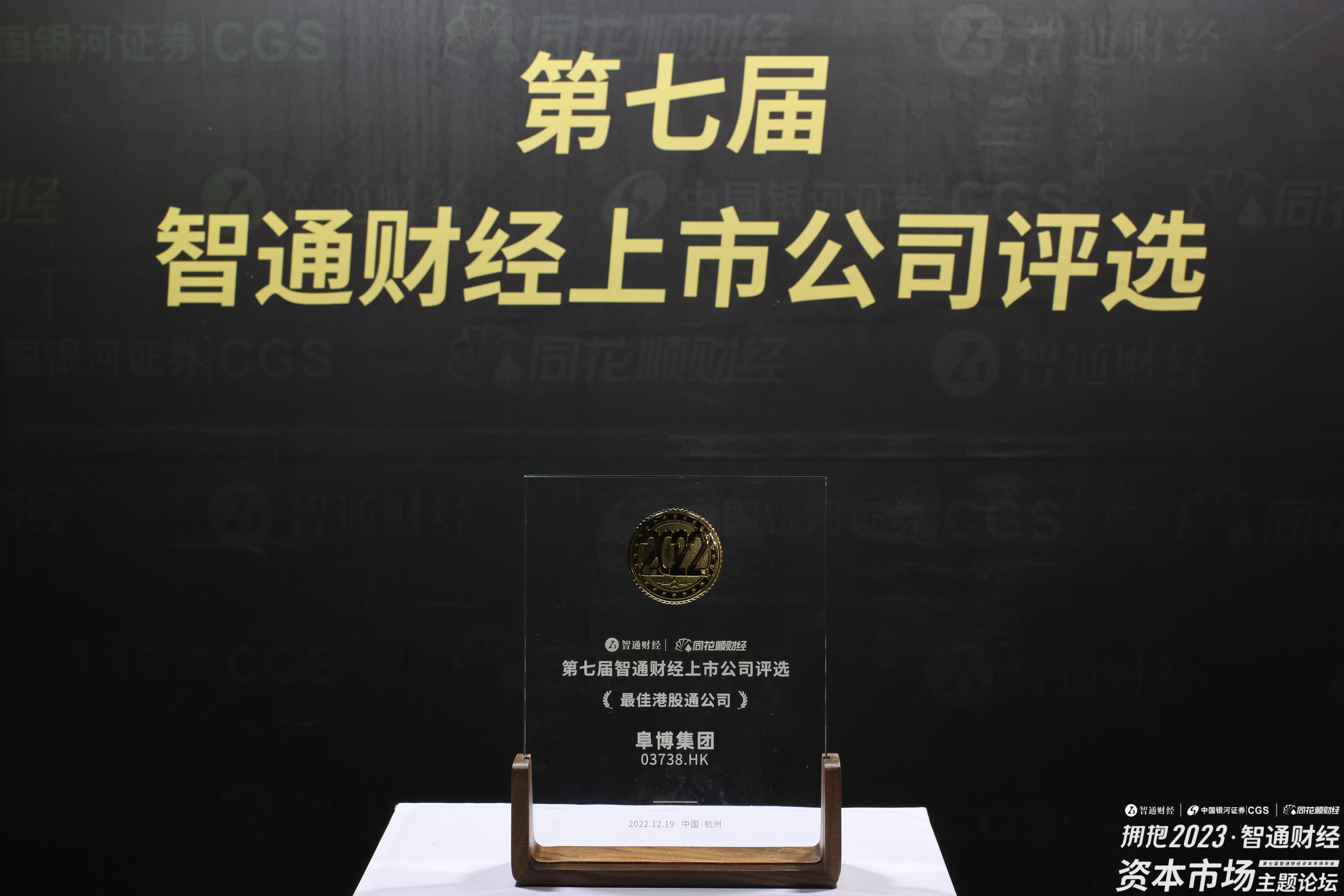 2022年12月19日上午12点,在杭州举办的“第七届智通财经上市公司评选”上,阜博集团(03738)荣获“最佳港股通公司”大奖。
