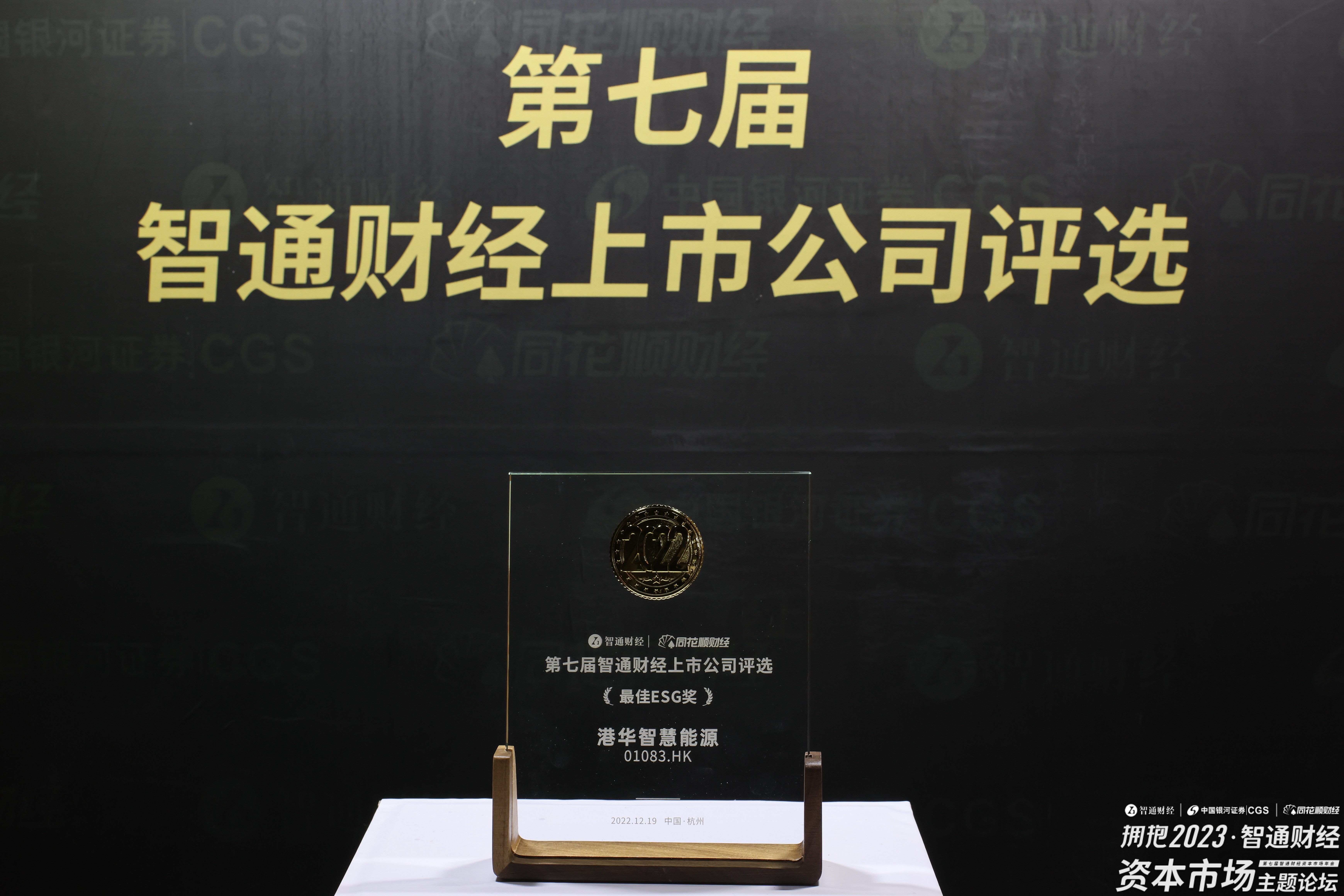 2022年12月19日上午12点,在杭州举办的“第七届智通财经上市公司评选”上,港华智慧能源(01083)荣获“最佳能源与资源公司”和“最佳ESG奖”大奖。