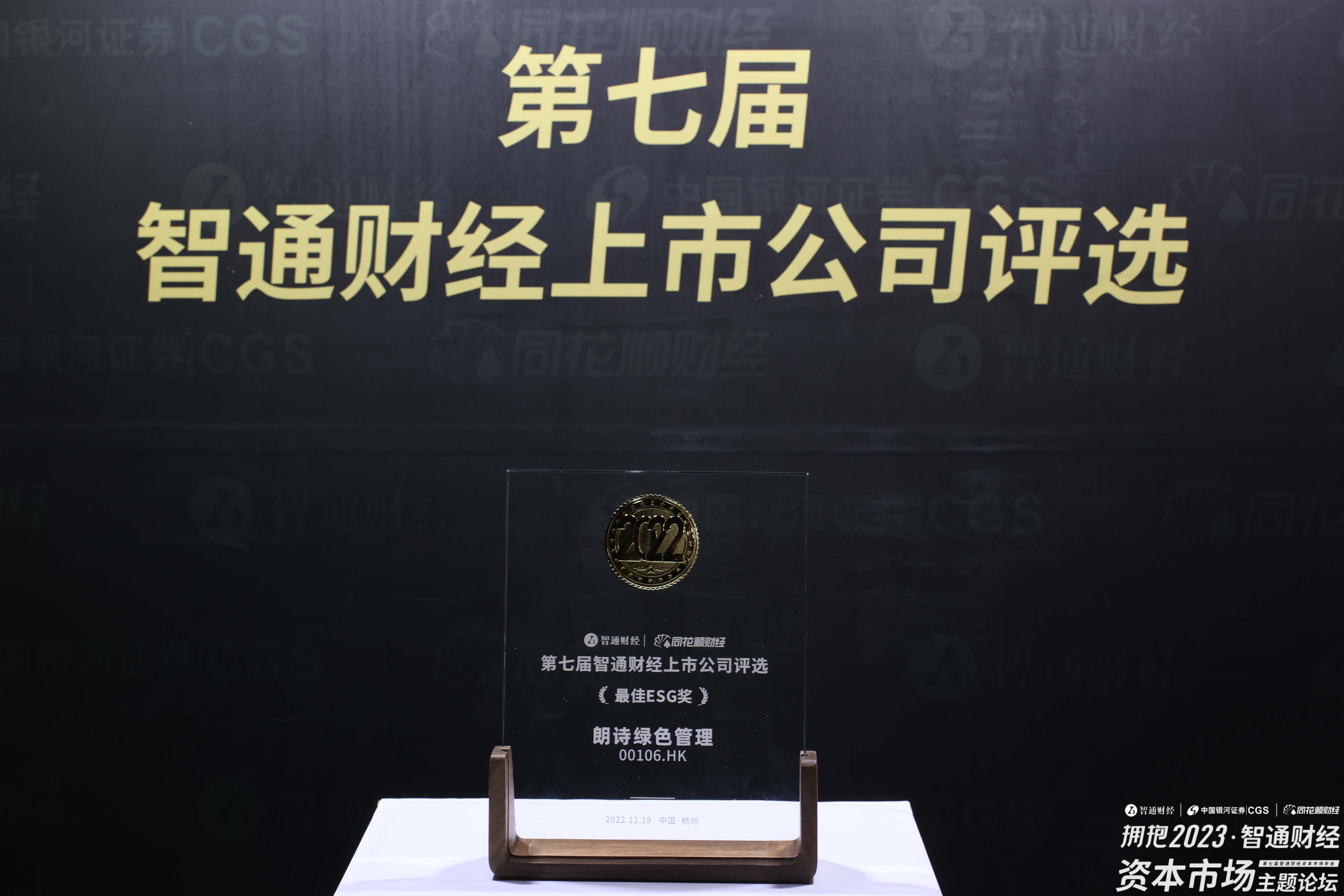 2022年12月19日上午12点,在杭州举办的“第七届智通财经上市公司评选”上,朗诗绿色管理(00106)荣获“最佳ESG奖”大奖。
