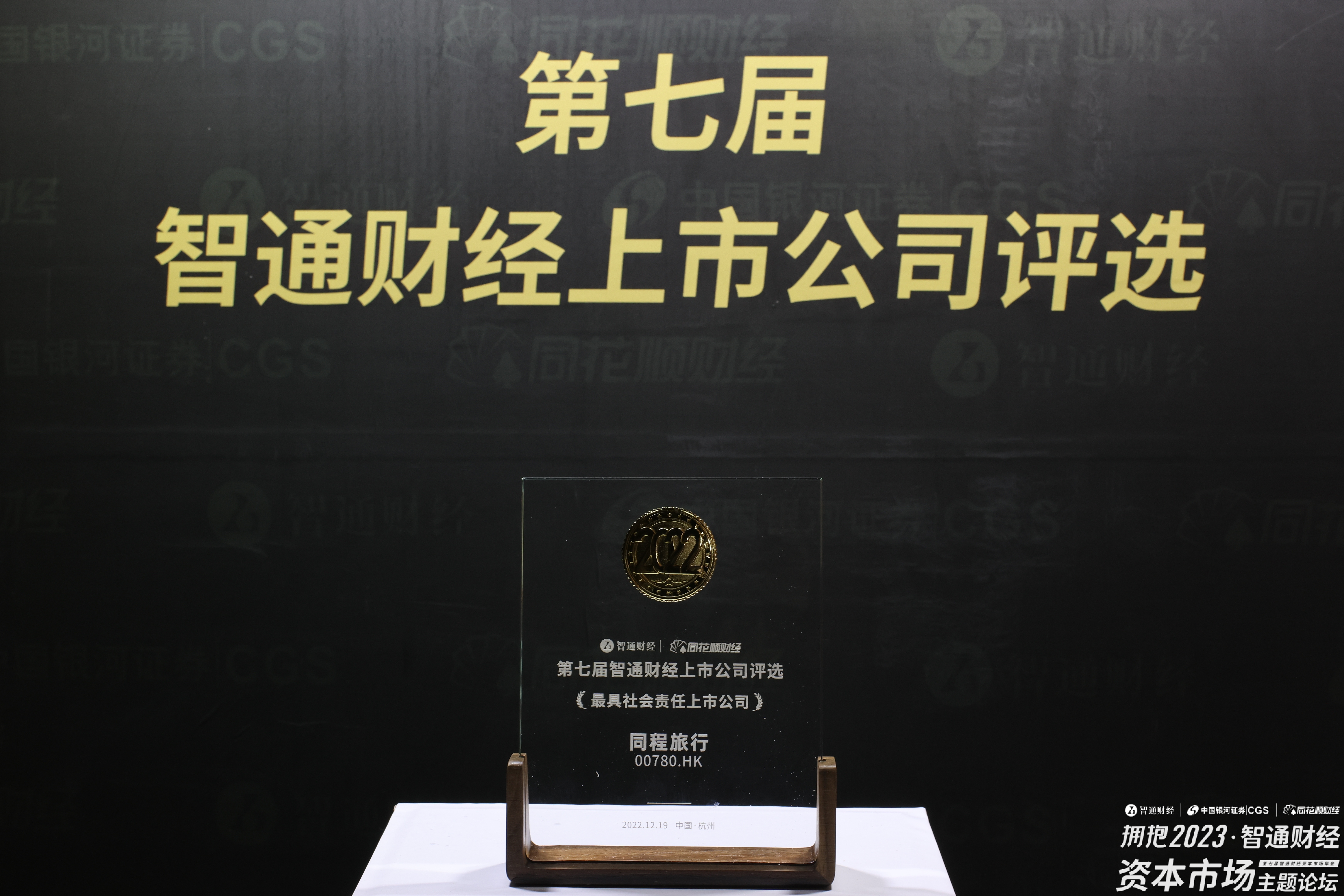 2022年12月19日上午12点,在杭州举办的“第七届智通财经上市公司评选”上,同程旅行(00780)荣获“最具社会责任上市公司”大奖。