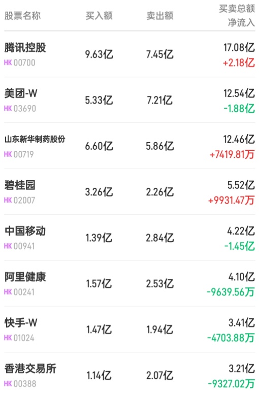 此外,小鹏汽车-W(09868)获净买入5297万港元。而中国移动(00941)、阿里健康(00241)、港交所(00883)分别遭净卖出1.44亿、1.18亿、9327万港元。