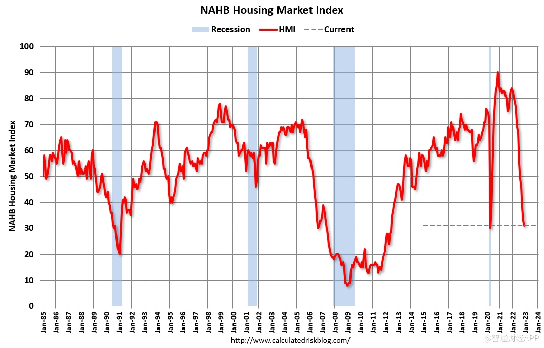 智通财经APP获悉,周一,根据全美住宅建筑商协会(NAHB)/富国银行住房市场指数(HMI),12月独栋住宅市场的建筑商信心下降2点至31。读数低于50表明大多数住房建筑商认为独栋住房市场状况不佳。