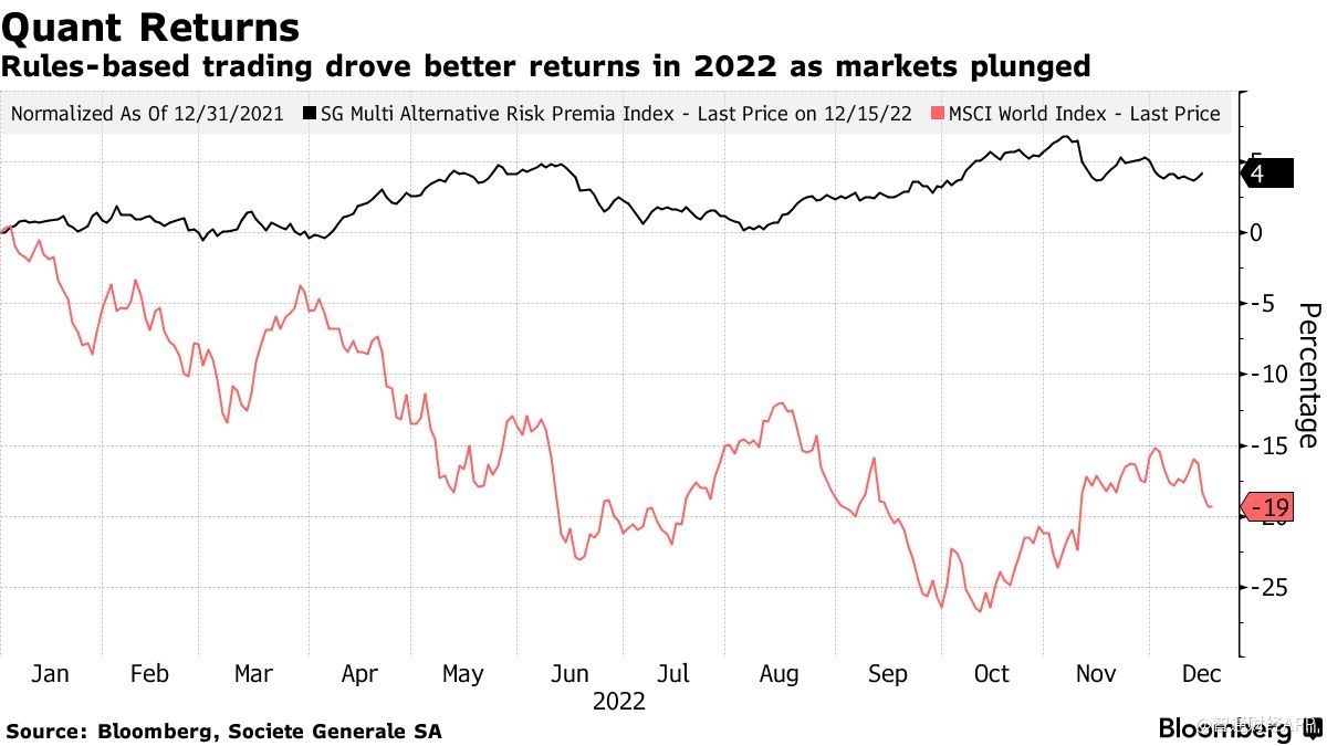 摩根士丹利表示,到2023年,今年的许多趋势可能会逆转,这也应该会推动量化投资的回报率。