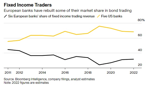 德意志银行(DB.US)等固定收益交易员再次占据市场份额,同时他们的贷款业务也在蓄势汹势。就连摩根大通(JPM.US)和花旗集团(C.US)等美国巨头也在重新发现欧洲大陆,扩张其私人和企业银行业务,以便在欧洲本土与欧洲银行一较高下。