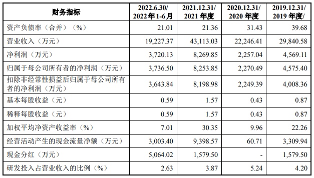财务方面,于2019年度、2020年度、2021年度,公司实现营业收入约为2.98亿元、2.22亿元、4.31亿元。净利润分别约为4569.11万元、2257.04万元、8269.85万元。