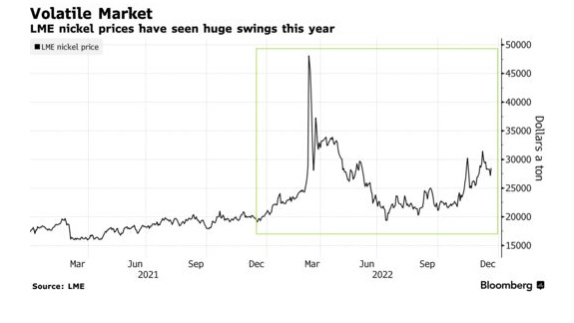 Nornickel控制着全球约十分之一的镍市场,今年的目标产量为20.5万吨至21.5万吨。据知情人士透露,该公司已经通知一些客户其减产计划。产量下降10%将使Nornickel接近2021年的水平,当时该公司两家主要矿山的供应受到洪水影响。