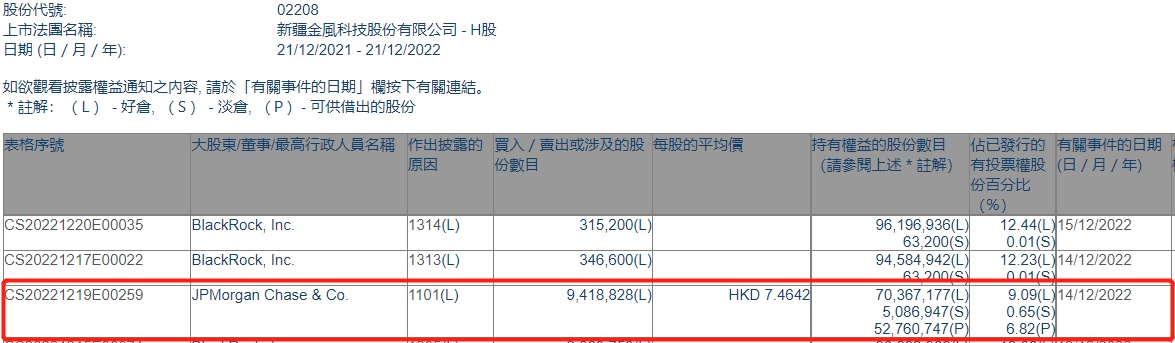 智通财经APP获悉,香港联交所最新资料显示,12月14日,小摩增持金风科技(02208)941.8828万股,每股作价7.4642港元,总金额约为7030.40万港元。增持后最新持股数目约为7036.72万股,最新持股比例为9.09%。