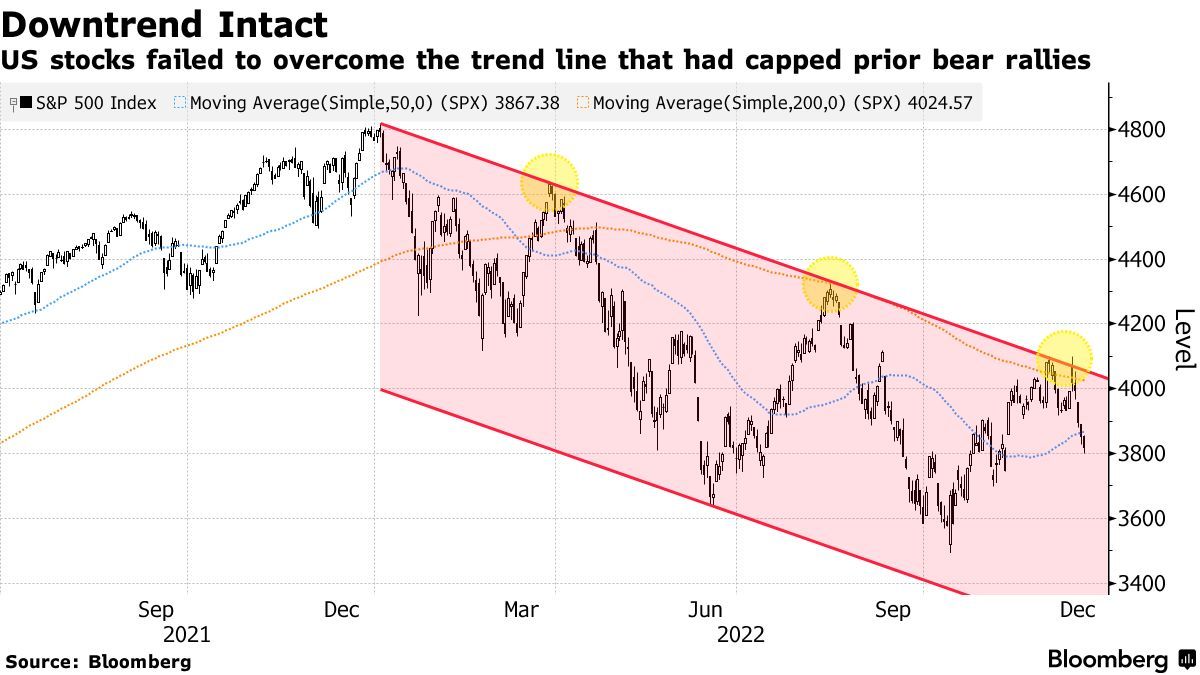 美股未能站上此前熊市反弹的重要趋势线——200日均线