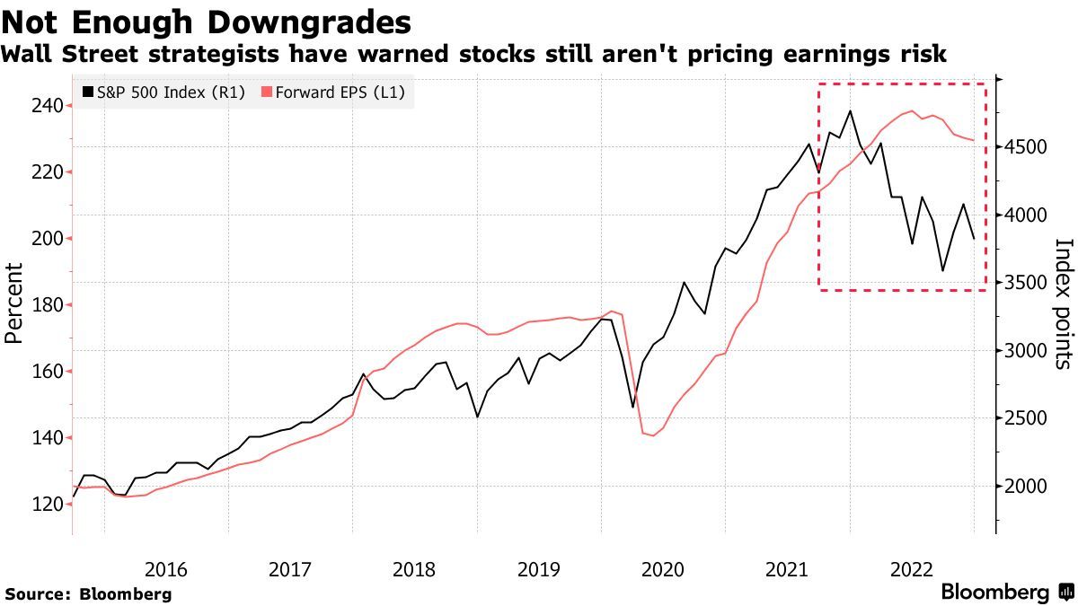 华尔街策略师警告称,股市仍未充分反映业绩风险