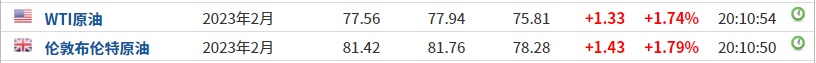 3. 截至发稿,WTI原油涨1.74%,报77.94美元/桶。布伦特原油涨1.79%,报81.42美元/桶。