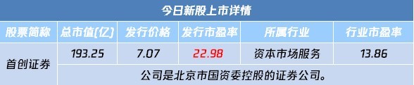 自选哥提示,今日沪深两市无新股申购,新股首创证券今日上市。