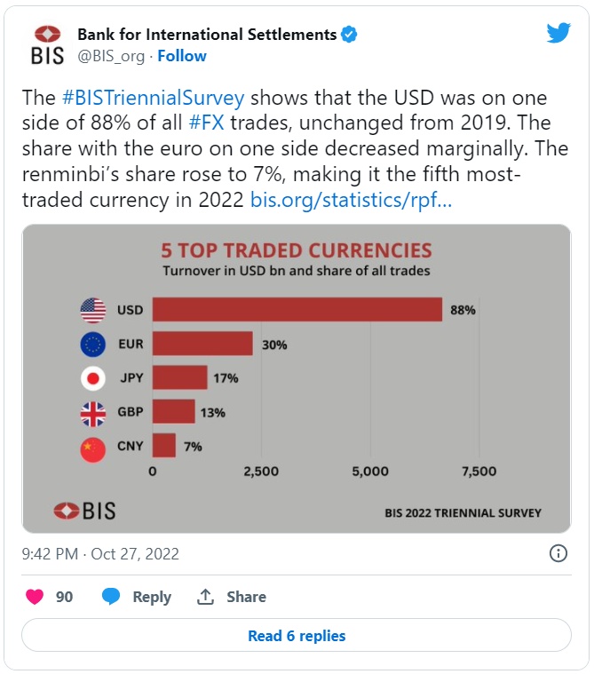 尽管出现了各种骚动和行动,但美元的主导地位不太可能在短期内受到挑战。美国经济的实力和规模仍然不可撼动,美国国债仍然是最安全的资本储存方式之一,美元在外汇储备中占最大份额。例如,美元在所有外汇交易的比例占88%。
