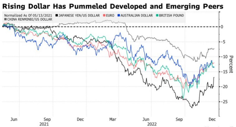 根据彭博(Bloomberg)的美元指数,美元今年已升值约7%,有望创下2015年以来的最大年度涨幅。随着美元升值,从英镑到印度卢比等所有货币都跌至历史低点,该指标在9月份创下历史新高。
