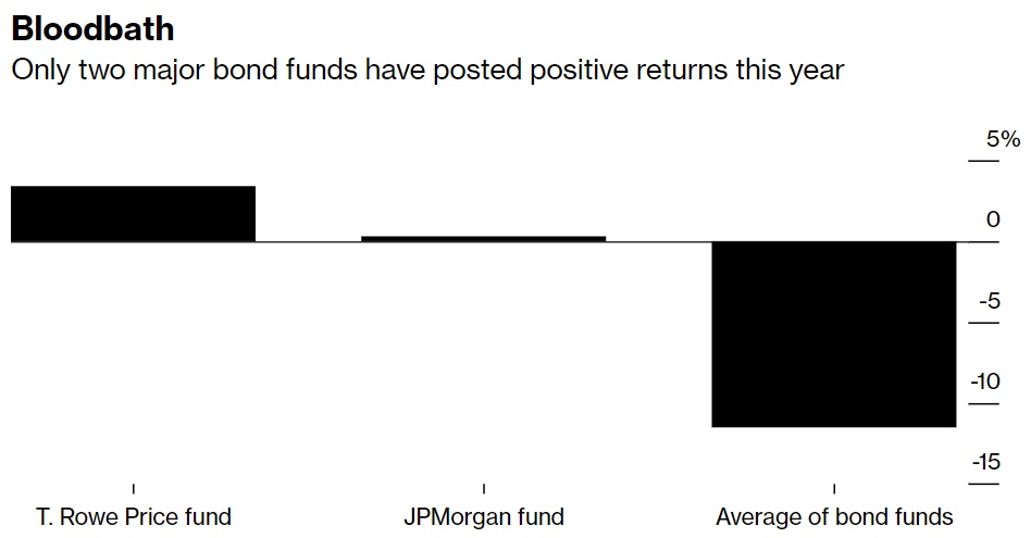 2022年,债券市场让华尔街最优秀、最聪明的投资者黯然失色。由于对发生的事情——几十年来最激进的加息——视而不见,一个又一个债券基金经理承受了沉重的损失;但这并不包括基金经理Scott Solomon与 William Eigen。在美国主动管理着至少10亿美元资产的198只债券基金中,他们管理的T. Rowe Price Dynamic Global bond Fund和JPMorgan Strategic Income Opportunities Fund是今年仅有的两只实现盈利的债券基金。