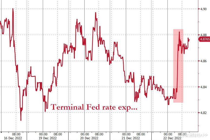 美国三季度GDP公布后,市场对美联储2月份加息25个基点至4.5%-4.75%的预期基本保持不变,不过对2023年5月前最终利率的预期上升至4.89%。