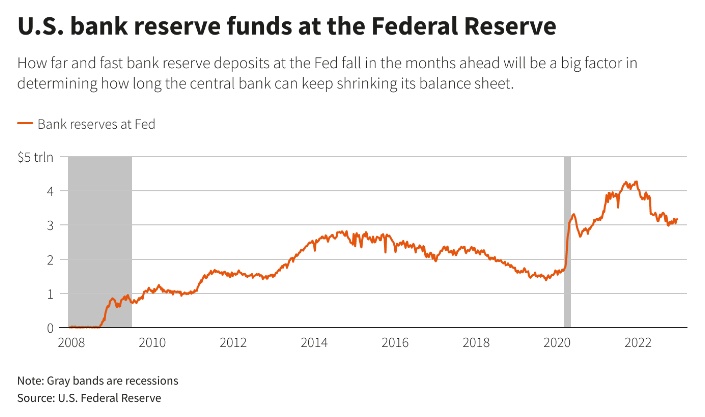 Monetary Macro首席投资官Joseph Wang认为,最常被称为量化紧缩(QT)的进程将在2023年第三季度改变。当这种转变到来时,“可能是由于国债市场流动性恶化或银行准备金持续下降”。