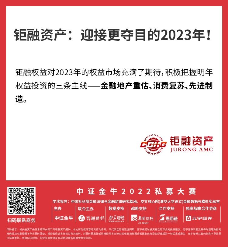 智通财经APP获悉,由元宇证券独家战略支持的中证金牛2022私募大赛于12月1日正式启动,赛事正如火如荼开展。近期不少参赛机构研究团队及产品主理人就市场走势和行业展望发表真知灼见。中海外钜融资产管理集团有限公司表示,展望2023年权益市场,积极把握明年权益投资的三条主线--金融地产重估、消费复苏、先进制造。