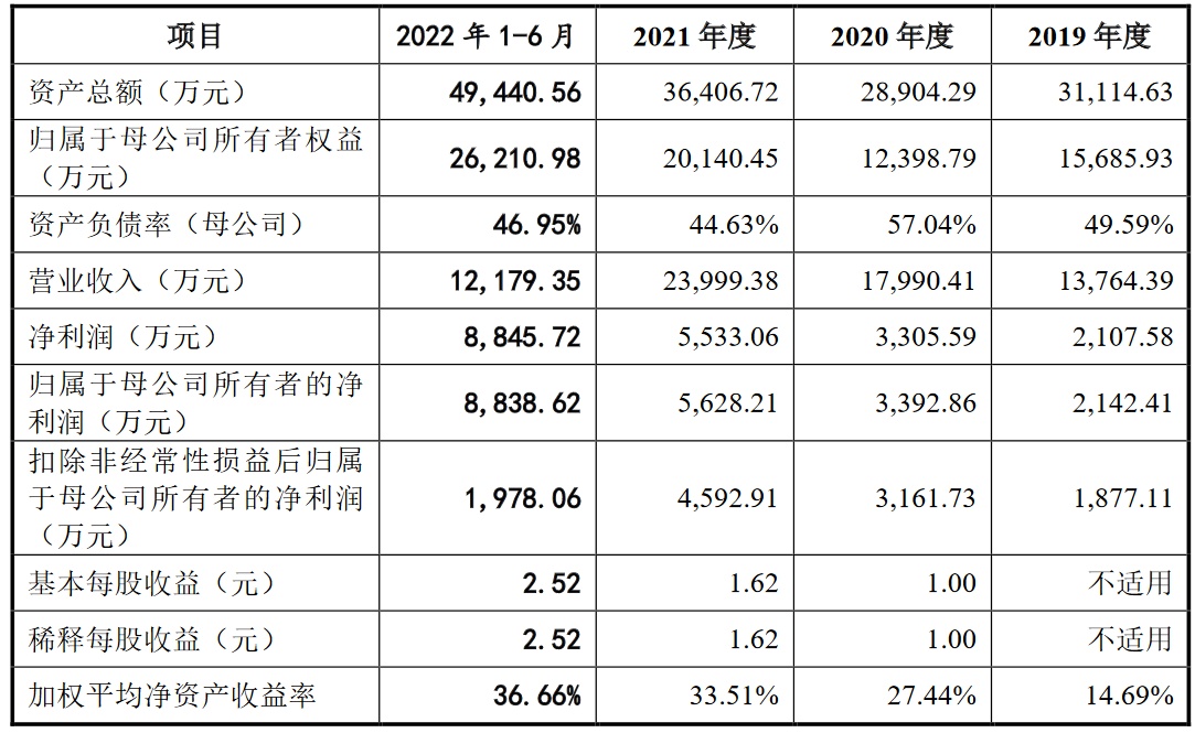 财务方面,于2019年度、2020年度、2021年度,公司实现营业收入约为1.38亿元、1.80亿元、2.40亿元。净利润分别约为2107.58万元、3305.59万元、5533.06万元。