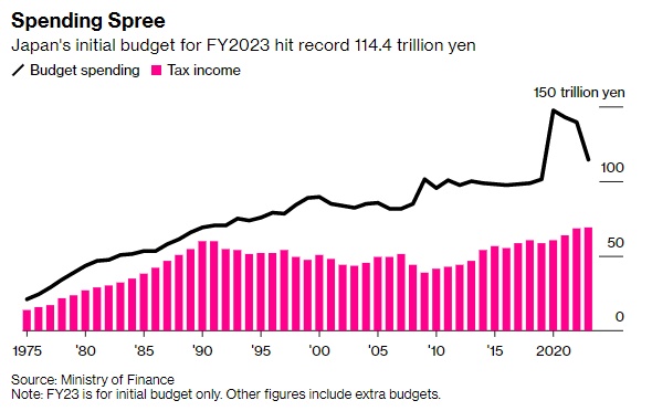 大部分预算支出将来自创纪录的69.4万亿日元的税收,以及一些额外的资金来源。但成本最终将需要另外35.6万亿日元的借款。