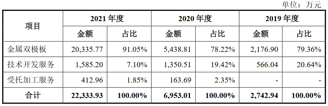 招股书显示,治臻股份是一家专业从事燃料电池金属双极板研发、制造、销售及相关技术服务的国家级高新技术企业,顺应我国能源结构转型而诞生,于2021年入选工信部第三批专精特新“小巨人”企业,现阶段公司产品主要应用于新能源汽车燃料电池领域,也可用于船舶、无人机、备用电源及氢储能等领域。