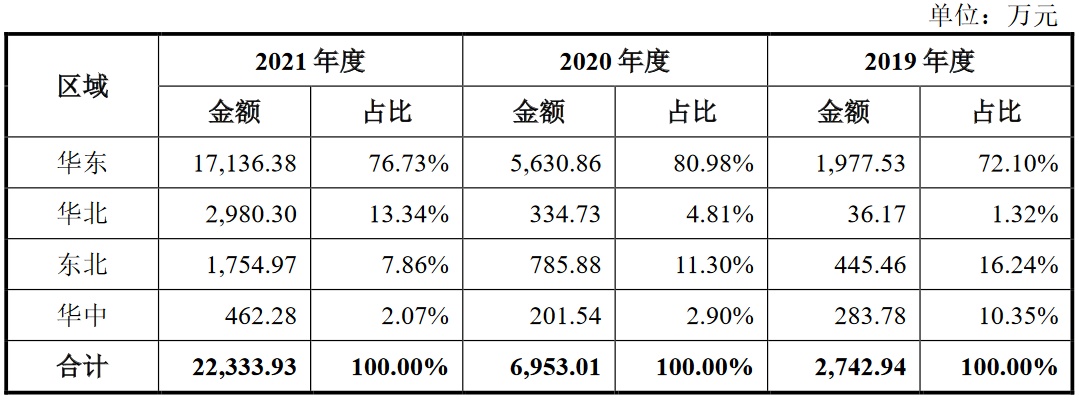 据悉,治臻股份主营业务收入按不同区域分类的销售情况如下: