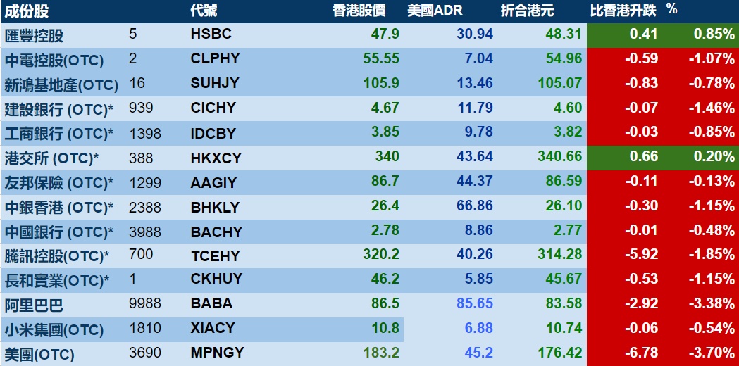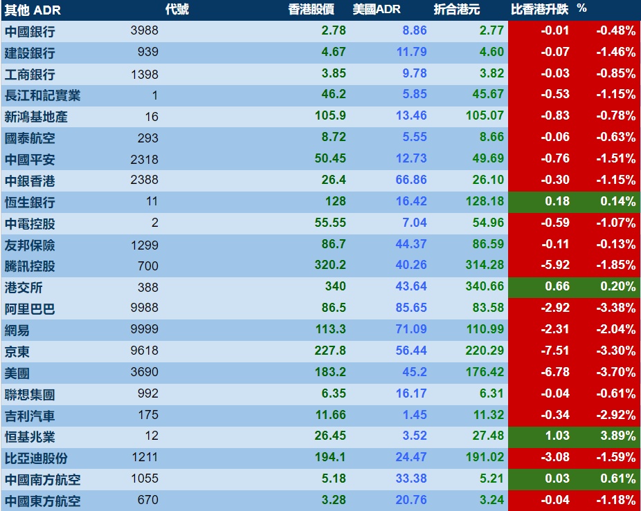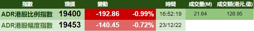 智通财经APP获悉,周五,美股三大指数集体上涨,但港股ADR指数下跌,按比例计算,收报19400点,较香港收市跌192.86点或0.99%。