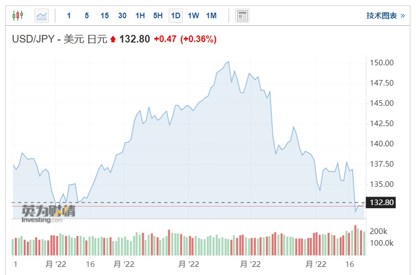 周二,日元升至130.58,为8月以来的最高水平。截至发稿,美元兑日元报132.8。