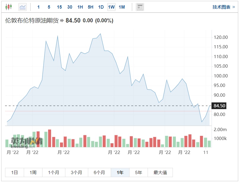 据了解,全球油价基准布伦特原油今年一度涨至120美元/桶,但随后一路狂泻,截至发稿,布伦特原油报84.50美元/桶。