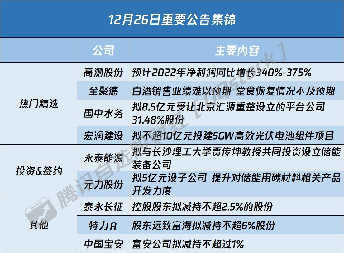 1、高测股份:预计2022年净利润同比增长340%-375%