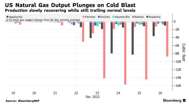 据悉,上周六,美国天然气产量低至842亿立方英尺,上周日情况依然没有改善,从德克萨斯州到纽约市的公用事业公司都在敦促客户节约电力以保护供应。