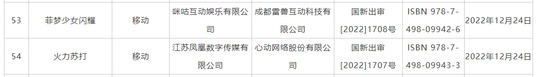 智通财经APP获悉,12月28日,国家新闻出版署公布2022年12月份国产网络游戏审批信息,共计84款游戏获批。在此次获批版号的游戏中,重点游戏包括网易(09999)的《巅峰极速》、中青宝(300052.SZ)的《边境军团》、心动公司(02400)的《火力苏打》、咪咕互娱的《菲梦少女闪耀》、领音文化的《觅仙途》、吉比特(603444.SH)子公司雷霆网络的《渊海王座》等。在这一次发放中,腾讯没有获得版号。