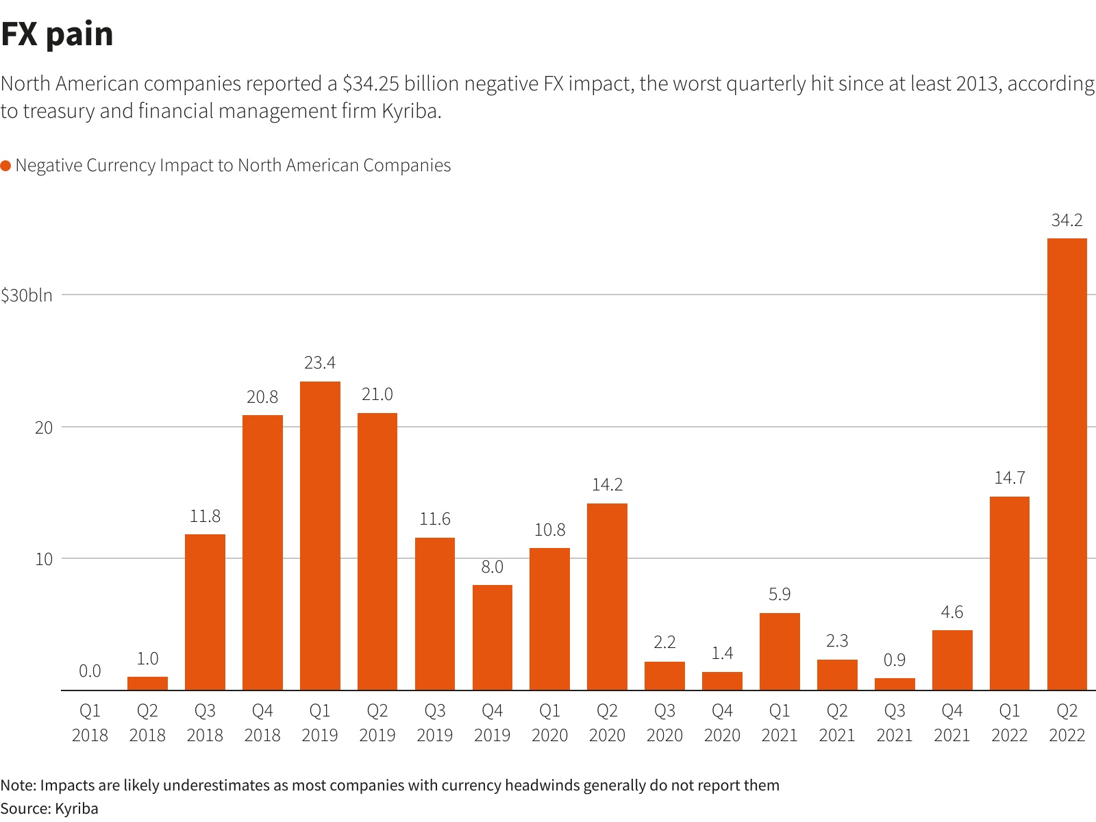 今年以来,美元的走强损害了许多美国企业的收益,令这些跨国企业将海外收益换回本国货币的成本更高。美元在近几周回吐了此前的部分涨幅,其跌势能否持续在一定程度上取决于投资者对美联储相对于全球其他央行的强硬程度的看法。