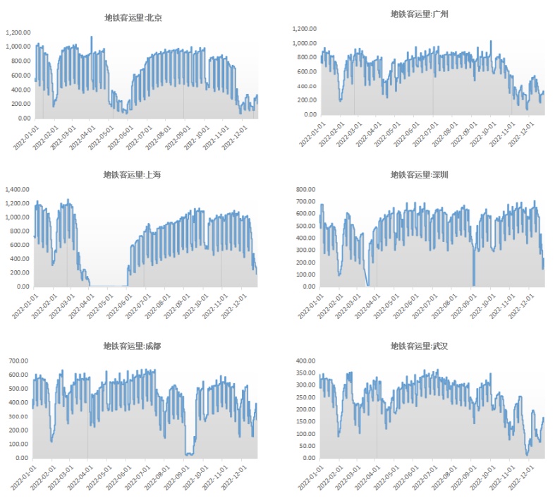 钜融资产指出,从地铁出行强度看,北京、广州、深圳、上海、南京、郑州地铁客流量占同期30%左右,重庆、武汉、成都为同期50%左右。受疫情影响,2022年12月以及2023年1月的消费、投资生产活动都将受较强影响,但局部地区消费开始修复。多个旅游平台的数据显示,近一周,海南目的地出游订单明显增加,酒店订单和民宿也出现火爆情况。据途牛透露,近一周与上周相比,海南目的地出游订单增幅50%,云南订单增幅36.7%,客源地主要是上海、南京游客,其次是北京、天津。