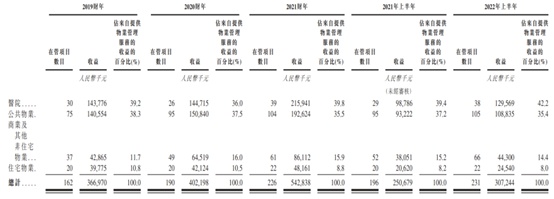 截至2022年上半年,该公司为231个项目提供物业管理服务,其中公司在管医院及在管公共物业项目数分别为38和105。就中国物业管理行业各板块产生的收益而言,2021年润华在医院领域的市场份额为0.6%,在非住宅(包括医院、公共物业及商用物业)的市场份额为0.3%。