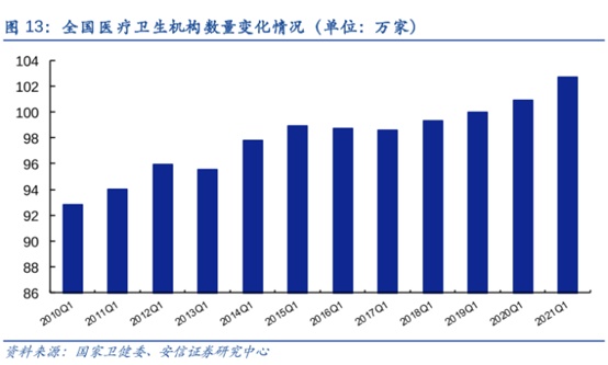 从市场空间角度来看,截至2021年Q1,全国医疗卫生机构达到102.6万家,其中等级医院3.6万家,基层医疗卫生机构97.3万家,专业公共卫生机构1.4万家,而在后疫情时代中,医院的数量有望继续攀升,对相关物业的需求亦将随之实现增长,这或许有望成为润华生活服务的未来成长点。