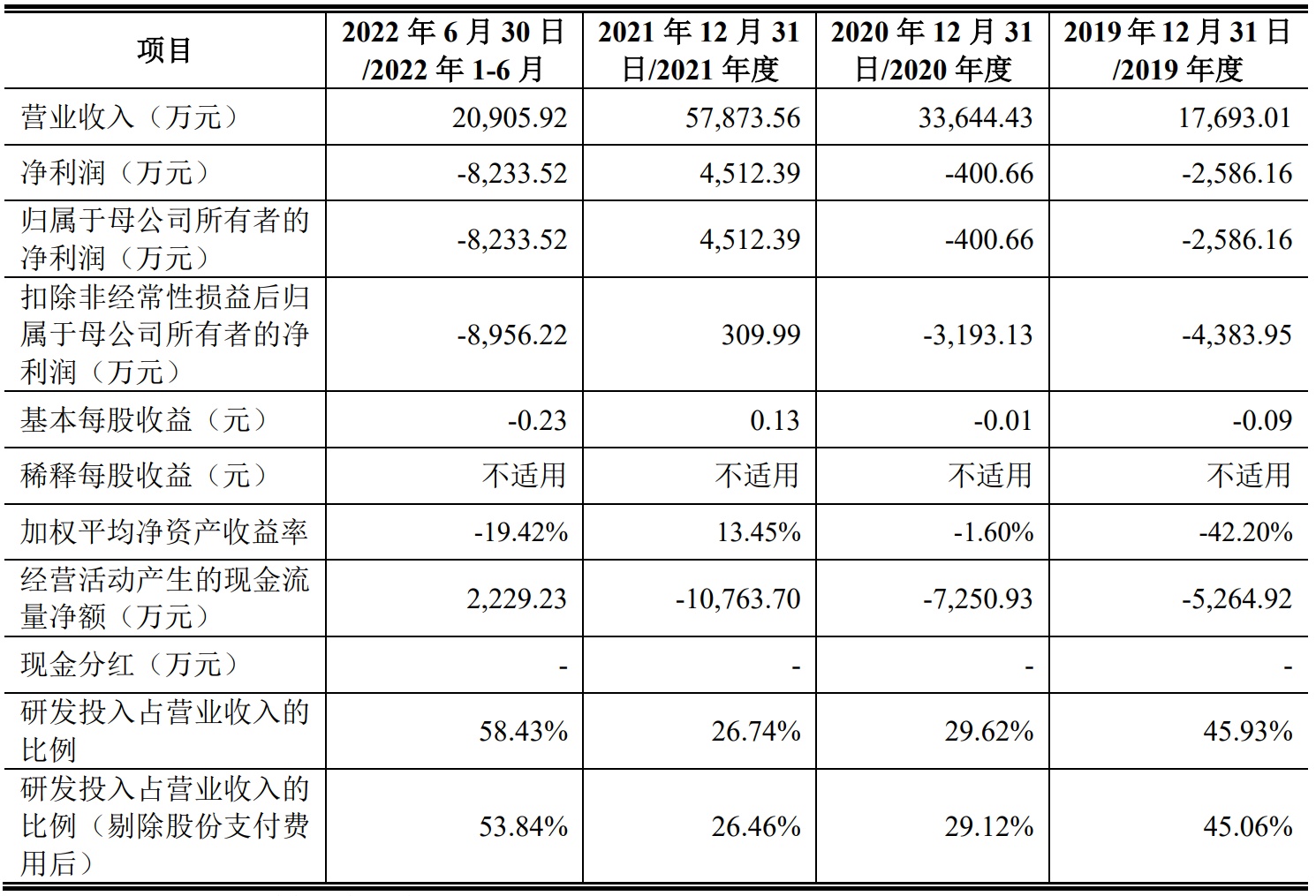 财务方面,于2019年度、2020年度、2021年度及2022年前6个月,联芸科技实现营业收入约为1.77亿元、3.36亿元、5.79亿元及2.09亿元;净利润约为-2586.16万元、-400.66万元、4512.39万元、-8233.52万元。