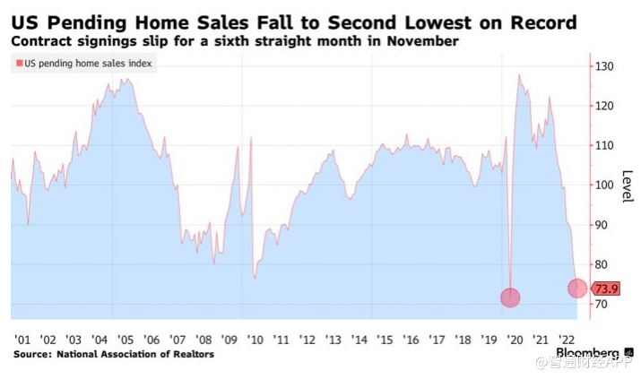智通财经APP获悉,周三,全美房地产经纪人协会(NAR)发布的数据显示,上月待售房屋签约指数下降4%至73.9,为2001年以来除新冠疫情外的最低水平。这一降幅比媒体调查的经济学家的所有预期都要大。
