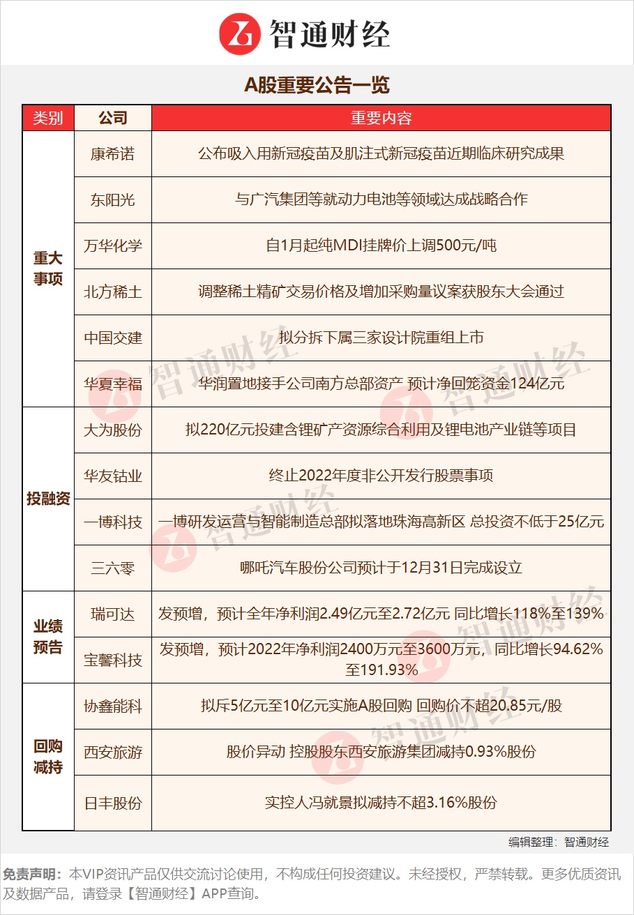 【A股重要公告一览】