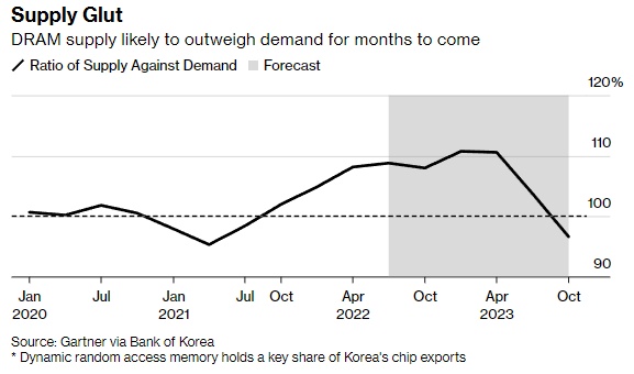 自去年10月以来,库存出现了两位数的增长,突显出全球存储芯片供应过剩,而韩国在这方面处于领先地位。芯片制造商正在重新调整投资计划,以应对国内外对其产品需求的下降。