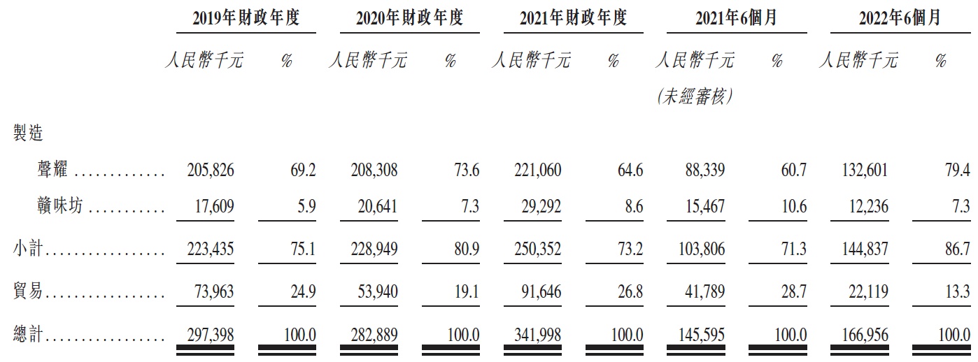 拆分收入结构来看,正味集团的收入可以初略分成制造和贸易两大块。其中,制造板块是正味集团收入的主要来源,报告期内该业务收入占比均超过七成。