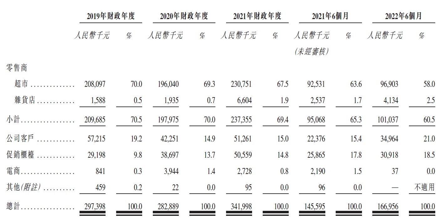 对于休闲食品行业里的参与者而言,分销渠道是影响企业发展的重要因素之一。目前,正味集团通过超市、促销专柜、杂货店、公司客户及电商等多个渠道来分销产品。