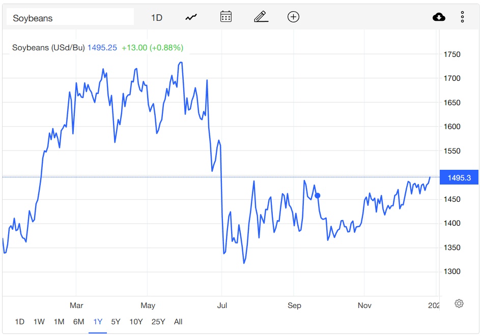 俄乌冲突同样是全球粮食价格在今年一度大幅上涨的主因之一。俄罗斯与乌克兰均为粮食和食用油的主要供应国,其约占全球小麦贸易的四分之一,玉米销售的五分之一,葵花籽油出口的80%。俄乌冲突导致的乌克兰主要粮食外运港口被封锁以及农作物种植受阻,再加上美欧等国家对俄制裁导致大部分粮食买家暂停与俄罗斯的交易,危及全球粮食供应。芝加哥小麦期货在3月飙涨至每蒲式耳12.53美元,并在5月因“全球第二大小麦生产国”印度宣布禁止小麦出口而一度涨至每蒲式耳12.78美元;芝加哥大豆期货价格也在5月底站上每蒲式耳17美元关口。