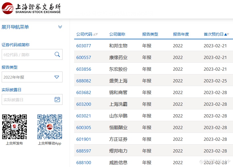 智通财经APP获悉,12月29日,上交所2022年年报预约披露时间出炉。和邦生物(603077.SH)、康缘药业(600557.SH)、东宏股份(603856.SH)拔得头筹,将于2023年2月21日率先披露。盛美上海(688082.SH)紧随其后,将于2月25日披露。另有上海洗霸(603200.SH)、山东华鹏(603021.SH)、恒顺醋业(600305.SH)、方正证券(601901.SH)等多只个股均将在2023年2月28日披露2022年年报。