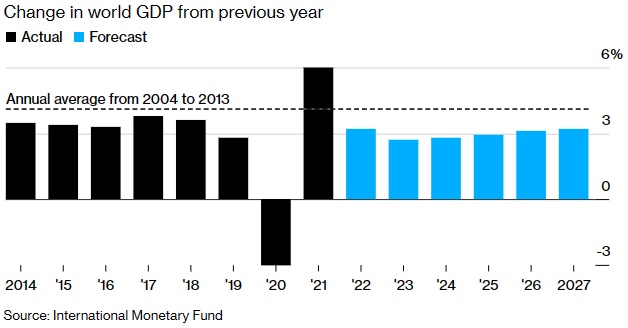 由于生活成本飙升带来的家庭支出压力,以及加息开始产生影响,2022年经济从疫情中的复苏失去了动力,且明年的情况可能会更加糟糕。国际货币基金组织(IMF)预测,全球经济将在很长一段时间内保持低于平均水平的增长。