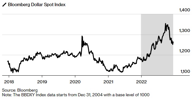 随着美联储迅速加息,美元出现了多年来的最大涨幅,这在一定程度上缓解了美国国内的通胀压力,但却加剧了世界其他地区的通胀压力。不过,由于市场对美联储放缓加息步伐的预期升温,美元在今年的最后几个月回吐了部分涨幅。