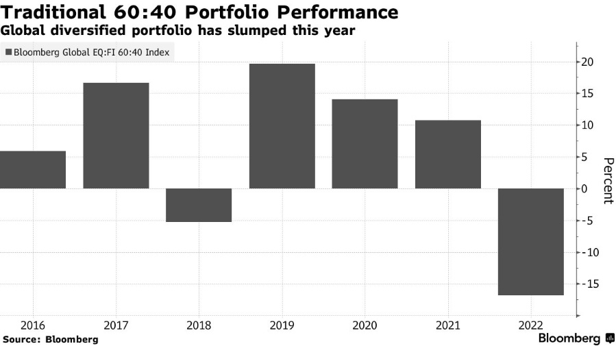 Dunnin称:“关键是,全球固定利率资产今年可能会下跌约20%。固定利率远不是通常起到的保守缓冲作用,它的表现与股票一样糟糕。”
