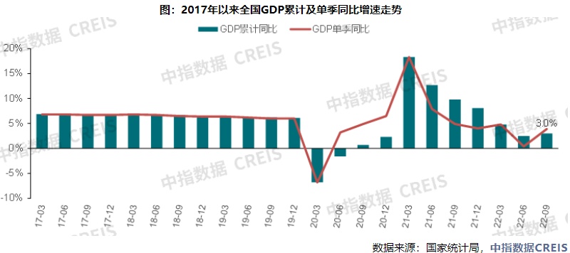 在“需求收缩、供给冲击、预期转弱”三重压力和超预期因素冲击下,2022年前三季度,我国GDP同比仅增长3.0%,11月,社会消费品零售总额单月同比下降5.9%,以美元计价的出口同比下降8.7%,房地产开发投资额单月同比下降19.8%。