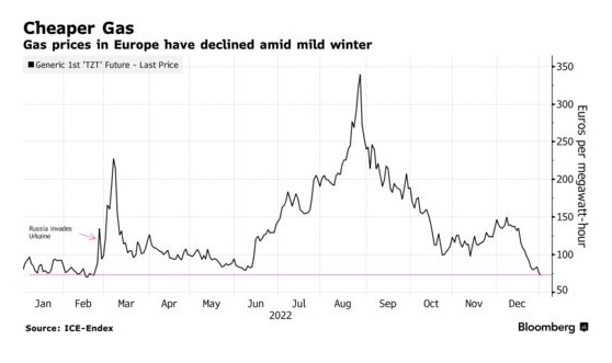 在经历了一年的极度波动之后,欧洲的能源成本达到创纪录高点,2023年将对欧洲大陆构成新的考验,因为它正在为俄气的限量供应寻找替代方案。与此同时,液化天然气的进口推动基准价格在12月份下跌了47%左右。