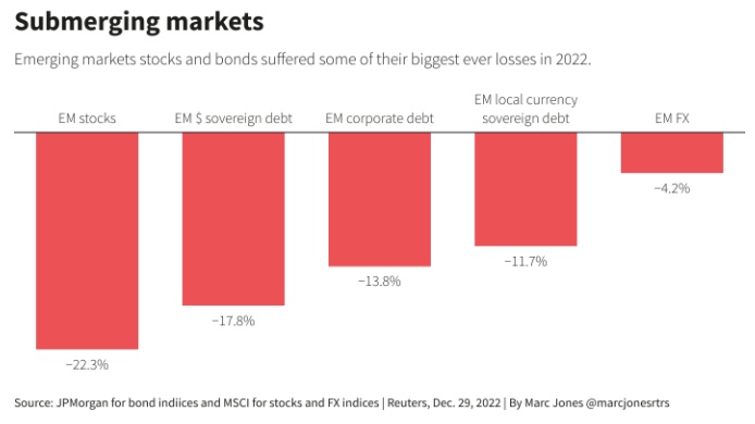 虽然新兴市场在2022年创下了不少亏损记录,但有迹象显示,多头们似乎逐渐回来抄底了。