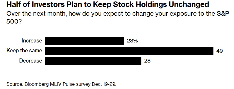 近一半的投资者计划保持股票仓位不变——调查:在接下来的一个月里,你预计如何改变你对标普500指数的敞口